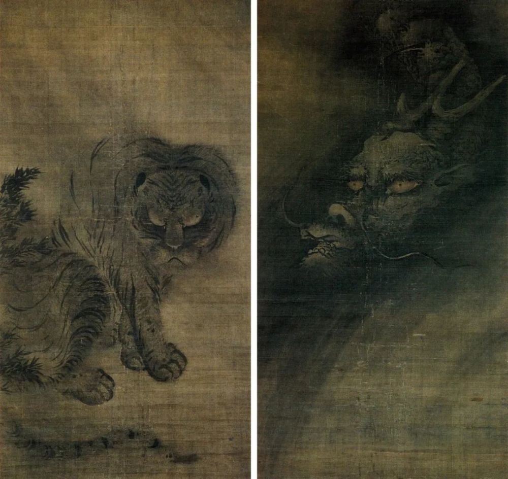 ◎1269年咸淳己巳《龍虎図》対幅 絹墨淡 147.8×94cm 大徳寺