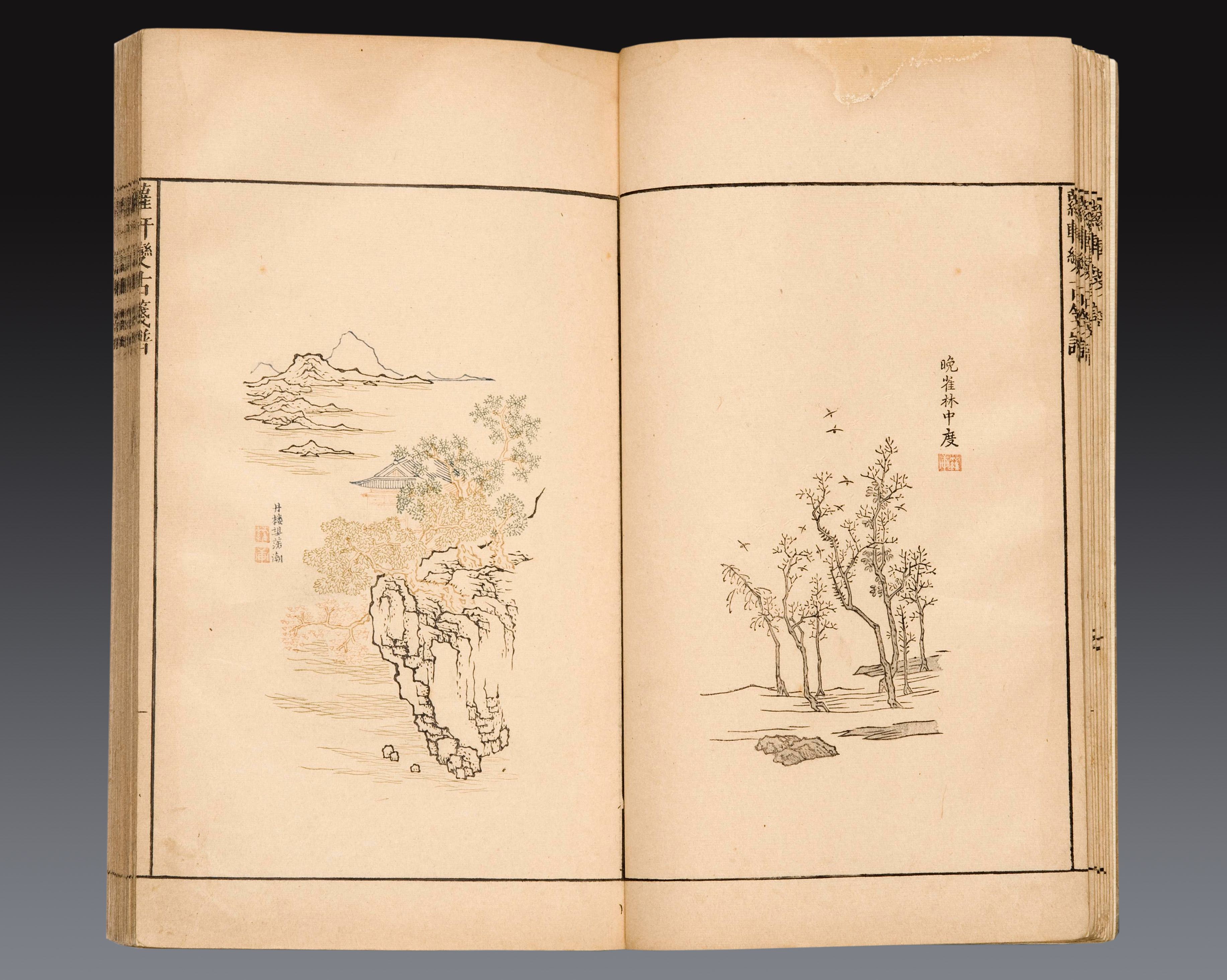 王概らが編纂したこの画譜は絵画の技法を体系化しただけでなく版画としての完成度も極めて高く後の東アジア全体の画壇に決定的な影響