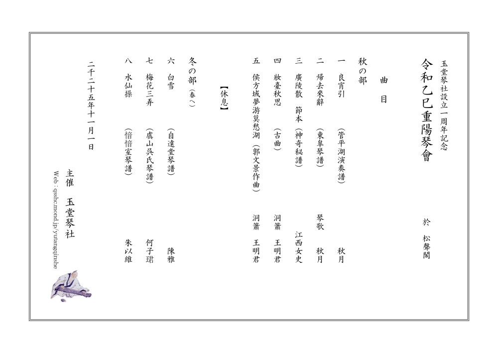 玉堂琴社設立一周年記念 重陽琴会