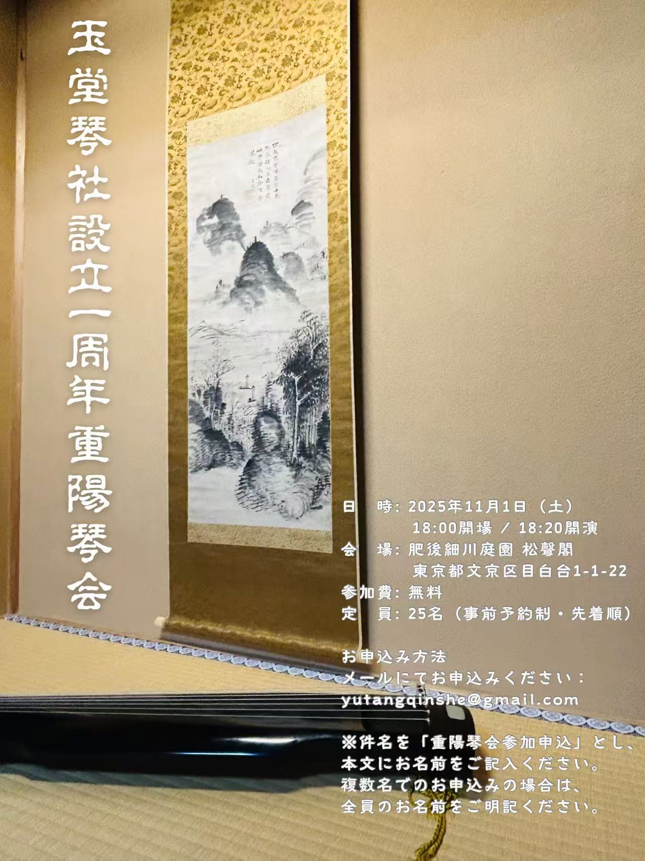 ※件名を「重陽琴会参加申込」とし、本文にお名前をご記入ください。